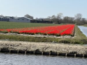 If you want to escape the crowds completely and aren’t afraid of a step count, this is the best way to see the region. You will be walking on the official Wandelnetwerk Bollenstreek (Bulb Region Hiking Network). These are paved or semi-paved paths that run directly alongside the canals and working tulip fields.