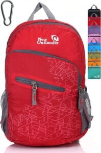 Just as an aside, I go absolutely everywhere with my lightweight New Outlander daypack (Amazon affiliate link). It collapses into a soft zippered pocket and it goes right into my backpack taking up practically no space.  When I need it, I just unzip the pocket, put whatever I need right into the daypack and off I go.  It has one good sized main compartment, and two smaller sized ones, as well as netting on each side to hold a water bottle and hand sanitizer.  It comes in ten different colors so you can choose one to match your mood and personality. I use consistently when I travel, and it is very durable.